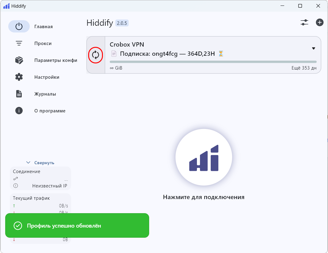 Удалите текущую конфигурацию, закройте приложение Hiddify, в том числе обязательно - в трее. Создайте новое подключение по нашей инструкции