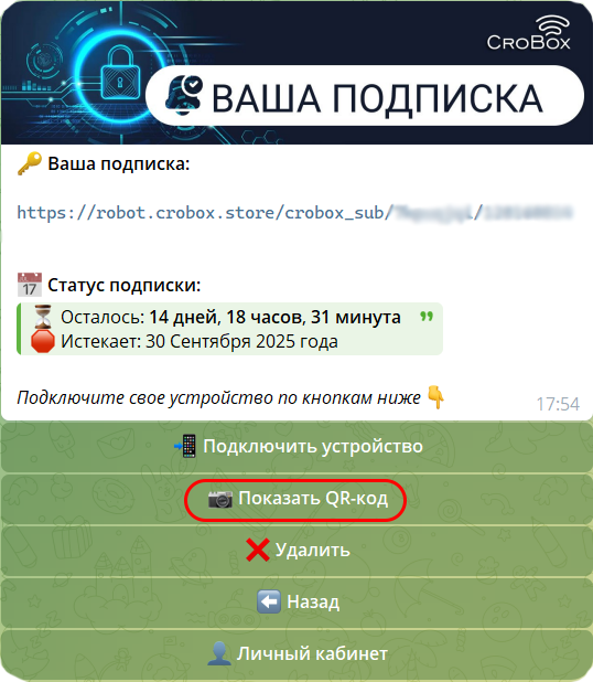 2) Нажмите кнопку 📷 Показать QR-код